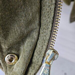 Isaac Mizrahi Suede Jacket-Olive Green Barn Jacket. In great condition. The details are endless from inside drawstring, to branding on the gold zipper pulls and snap closures. There are patch pockets on the outside and stylish vent on the back.