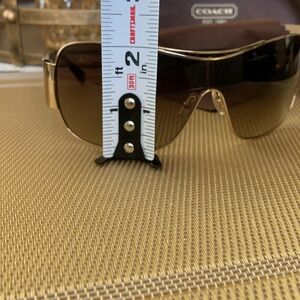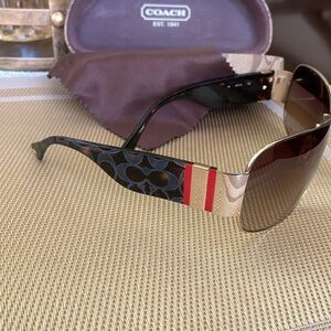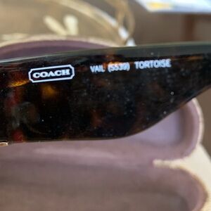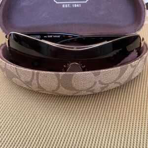 Coach Vail sunglasses in tortoise. Comes with Coach case (which is in excellent condition) and Coach cleaning cloth. Glasses are in excellent condition but the arms may need to be tightened.