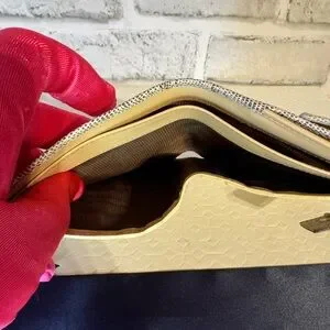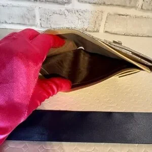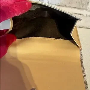 The compact design ensures it fits seamlessly into your purse or trousers, providing convenience without compromising on style. Inside, you'll find multiple card slots, a bill compartment, and a coin section, offering ample space for your essentials. Notably, the coin section has a slight stickiness on one side, while the other side is lined with nylon and remains unseen when closed. This minor imperfection does not affect the functionality or overall appearance of the wallet. Elevate your accessory game with this stunning piece. AS IS SALE. This wallet has never been used and has plastic on the lock