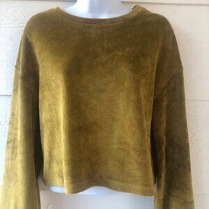 Double Zero Mystical Medium Olive Gold Velvety-Feel Long Sleeve Crop Top