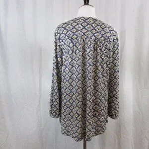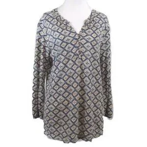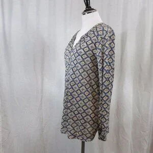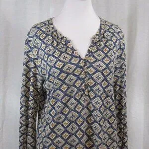 Lucky Brand Blue Green Print Cotton Blend Popover Top S