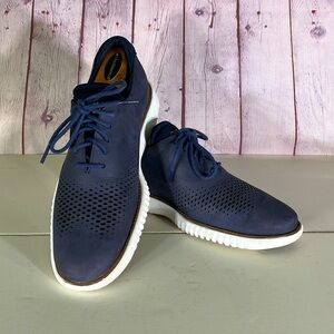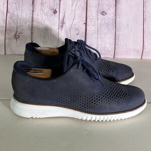 COLE HAAN Men's 2.ZERØGRAND Laser Wingtip Navy Blue Oxfords. Sz: 7