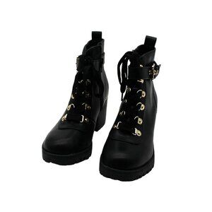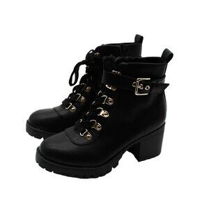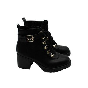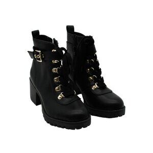 Wild Pair Womens Black Buckle Combat & Lace-up Boots