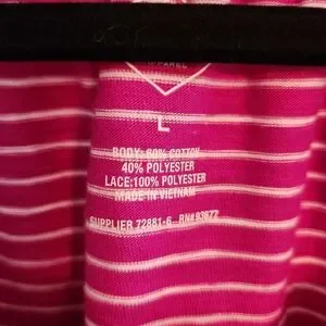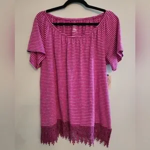 NWT St John's Bay Fucia and White Stripe Top with lacy fringe bottom. Size L.