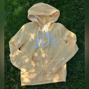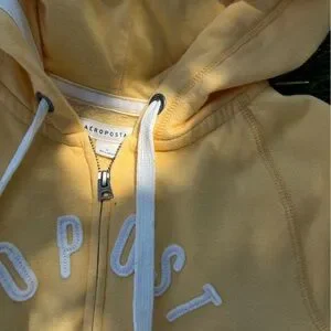 2000s Yellow Drawstring Kangaroo Pocket Zip Up Hoodie || AEROPOSTALE