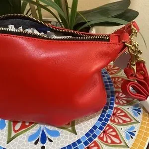Smooth leather distinguished a slightly unstructured bag fashioned with a detachable tubular handle and crossbody strap
