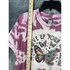 Women’s T-Shirt “Never Give Up On Your Day Dream” Tye Dye Butterflies & Flowers