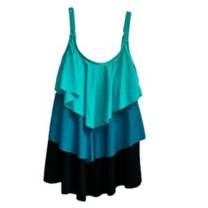 BLOOMCHIC Teal Black Layered Look Flattering Tankini Size 14/16