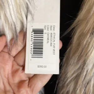 faux fur vest in the shade oatmeal. bought this on Revolve, but never wore it. New with Tags. Size small. the arm holes are a knit fabric as shown in the pic.