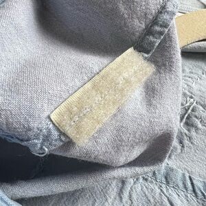 This button up shirt is light chambray blue and features animal and bird appliqués throughout. It’s very cute and unique.