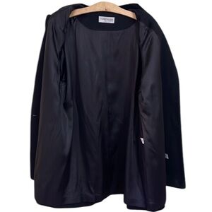 Womens BLACK Heavy Winter Wool Coat Velvet Collar Buttons Size 12