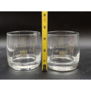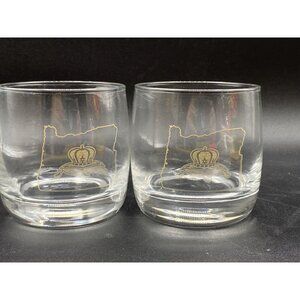 Crown Royal Oregon State Crown Pillow Gold Etched Rocks Glass LOT 2