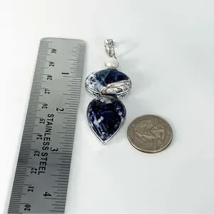 Sterling Silver 925 Sodalite Pendant Handmade Vintage Antique Style New