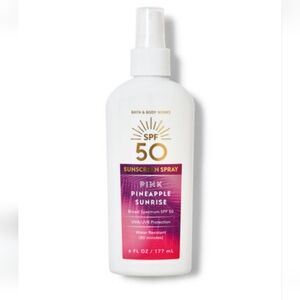 ๐๐NWTโผ๏ธ Bath & Body Works "Pink Pineapple Sunrise" SPF 50 Sunscreen Spray. Fragrance notes of sweet pink pineapple, palm sugar, and sun-drenched nectar. Perfect way to protect your skin from harmful rays, all while moisturizing. Even water resistant for up to 80 minutes.