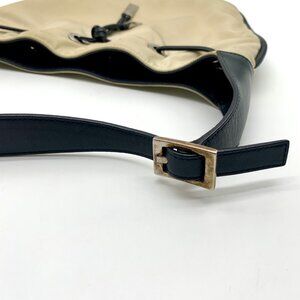 Gucci Beige Nylon and Black Leather Trim Drawstring Shoulder Bag