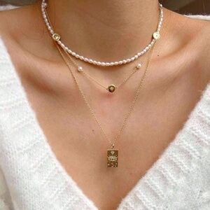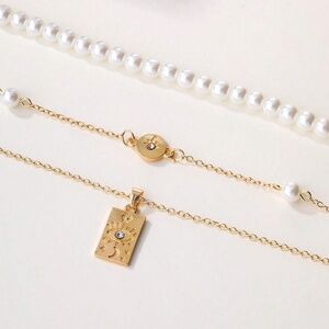 Gold Plated Faux Pearl Evil Eye Multilayer Necklace