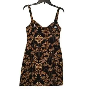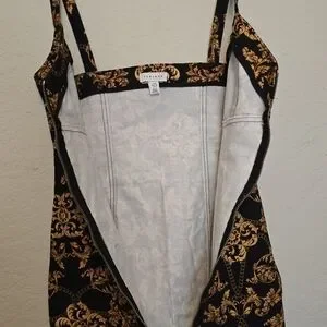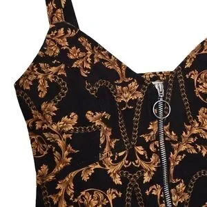 Topshop Printed Denim Zip front Tank Strap Dress black gold chain print. super cute and only worn once. Print has Versace designer vibe. Size 4