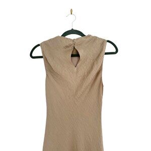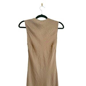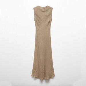 Lyocell-blend fabric. Textured fabric. Long design. Evasé design. Rounded neck. Sleeveless. Button fastening on the back section.