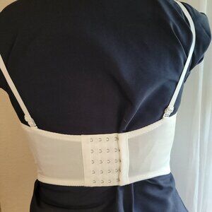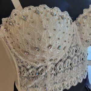 Gorgeous beaded and sequined lace bustier top with removable and adjustable straps. Size medium. Bra closure at the back. Full coverage cups.