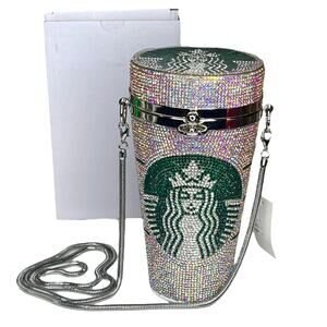 NEW Large Starbucks Coffee Cup Aurora Borealis Crystal Rhinestone HANDBAG Purse Bag Long Silver Chain And Mermaid Logo -NEW In Box!