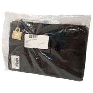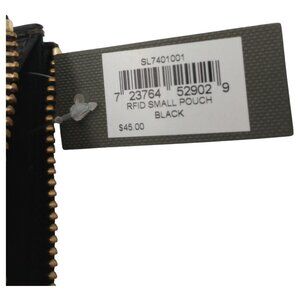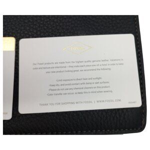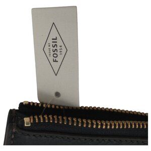 FOSSIL Pouch Purse RFID Black Leather Clutch Bag Hand Held Wallet Zip Pouch