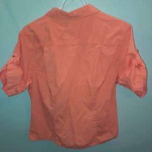 L.L. Bean womens size large peach colored Short Sleeve Button Down EUC