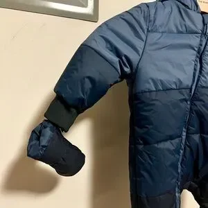Waterproof Mori Baby Insulated Snowsuit in excellent condition. Only worn once. Ombré blue color. Includes detachable insulated booties and mittens. Diagonal zip for easy on / off. Recycled fabric. See photos of care details. Please comment with any questions!
