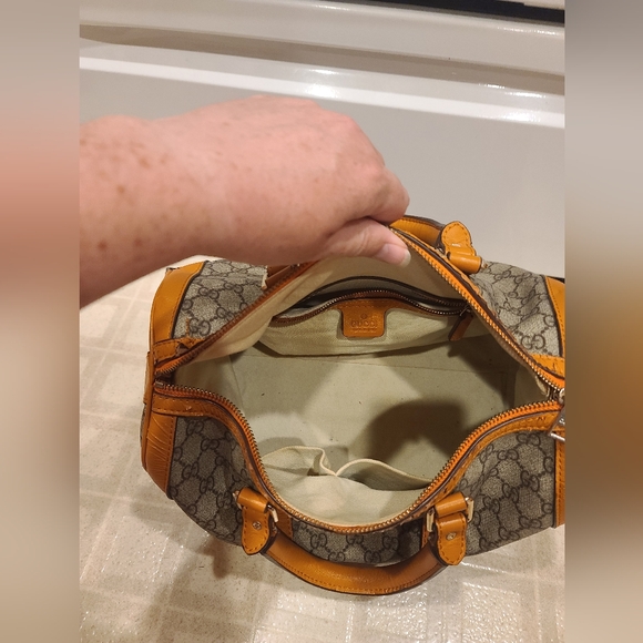 Gucci GG Boston Bag Yellow Beige Canvas and Leather. See description.