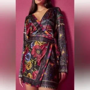 💥SOLD💥Farm Rio Black Mixed Scarves Mini Dress