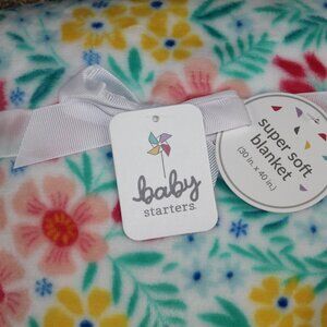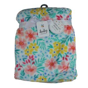 Baby Starters White Floral Flower Fleece Blanket Infant Girl Green Pink NWT RARE
