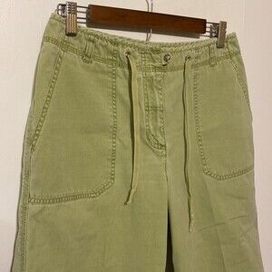 Vintage Y2K Drawstring Cropped Capri Painter Pants Green Chambray Women's M