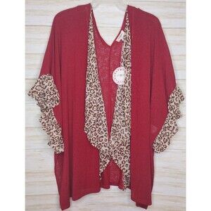 Umgee Darker Red Kimono/Cardigan with Animal Print Trim NWT S/M Sheer