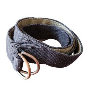 Vintage Black Tan Fabric D Ring men's skinny belt S M L 40" military tactical