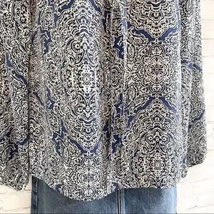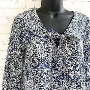 laundry by shelli segal blue & white paisley lace front top size XS