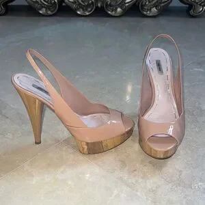 Love these heels. It’s missing two wooden pieces on one shoe (see pics). Other then that they are in great shape. Most comfortable heels I’ve ever owned. Size 37.5