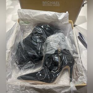 New Photos! MICHAEL KORS Ostrich Feather Suede Ankle Boot, Black, Size 8.5