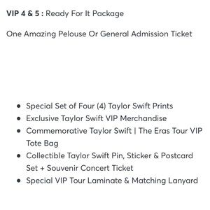 Taylor Swift Eras Tour VIP 4 Ready For It Package