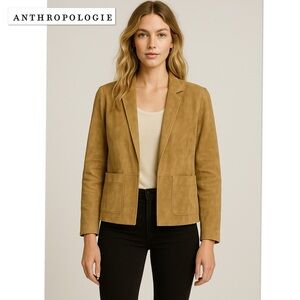 Anthropologie Jackett…etc. Genuine Suede Leather Open Front Jacket Blazer Boho M