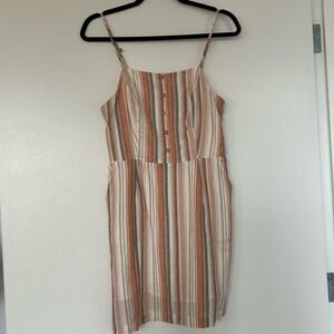 Lost + Wander striped mini dress featuring adjustable straps and faux button detail. Size medium and worn once- in excellent condition! Brand runs small.