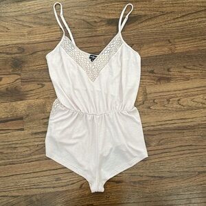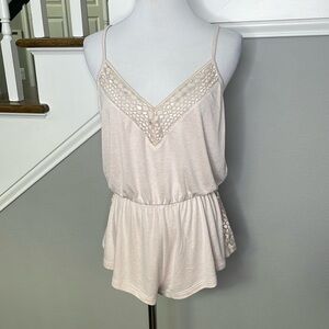 Cosabella Pale Pink Ribbed Sleeveless Lace Detail Loungewear Pajama Romper