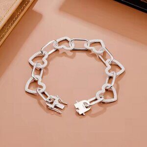 Certified Moissanite Bracelet Fully Ice Heart Link, 7"