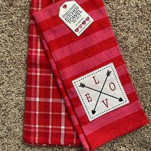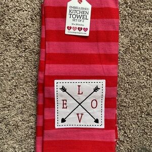 LOVE + Striped Pink & Red Kitchen Hand Towel Set of 2 NWT 18”x 28”