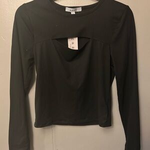 New with tags!! Black basic long sleeve top with peekaboo cutout in front.