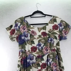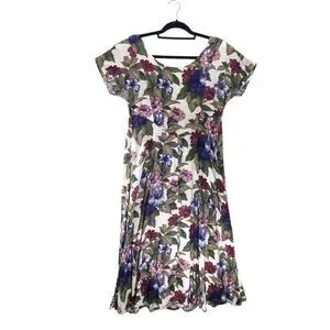 7/8 All That Jazz Midi Dress Plum Purple Floral Short Sleeve Vintage 80's 90's