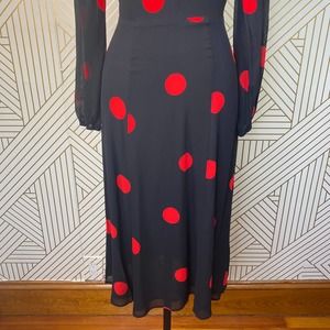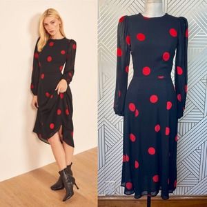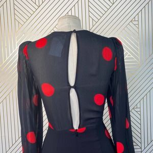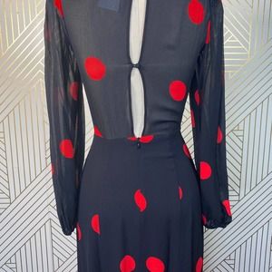 Reformation Luanne Dress Black Red Polka Dot