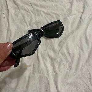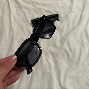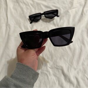 2 pairs of sunglasses included! Both are black and give different vibes. One is larger cat eye and the other is a skinnier geometric style. Perfect if you want to try out new styles! No scratches on the lenses. In perfect condition!