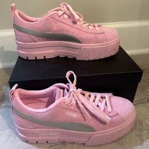 Special Edition Dua Lipa Pink Puma Sneakers size8.5, great condition, worn once- velvet exterior