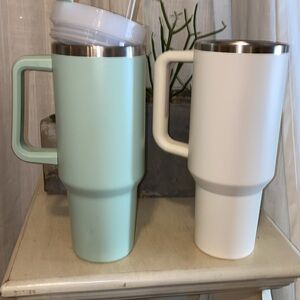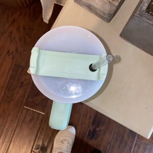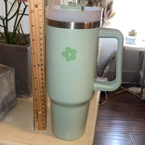 40oz tumbler insulated drink cup with handle mint green with top & clear straw