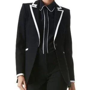 Alice + Olivia Breann Black Off White Piped Long Blazer Jacket Women's Size 2