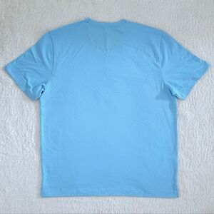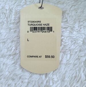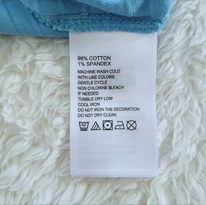 Color of tee👕 is "turquoise haze" which is a light blue🩵 with a tinge of green💚 (difficult to capture exact color in photos); faint, textured, horizontal↔️ lines throughout